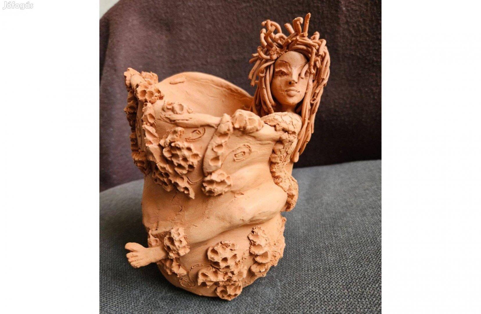 Szalczker Piroska kerámia, egyedi kézi terakotta szobor, pecsétes tégla jelzéssel