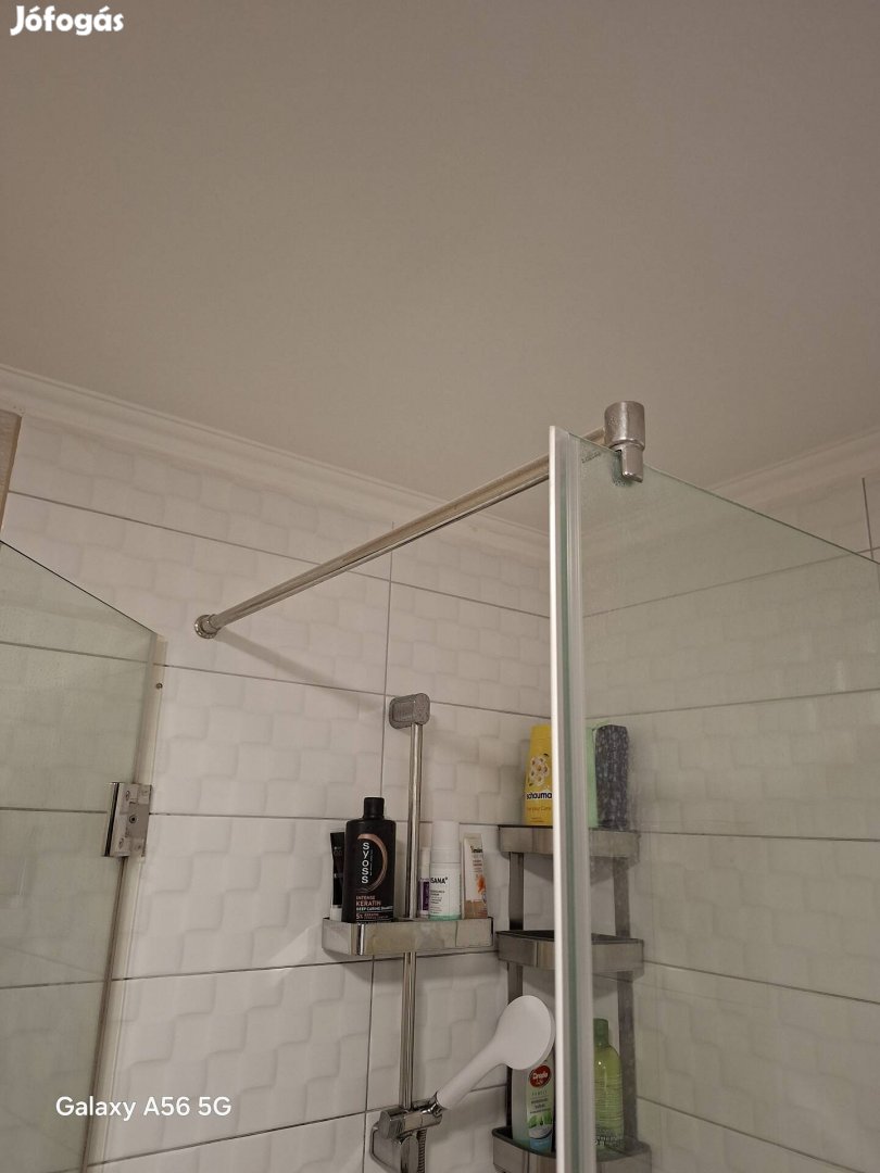Eladó egy egyedileg készített zuhanykabin ajtó, oldalfal. 80x195 cm, szerelvényekkel, 8mm üvegből.