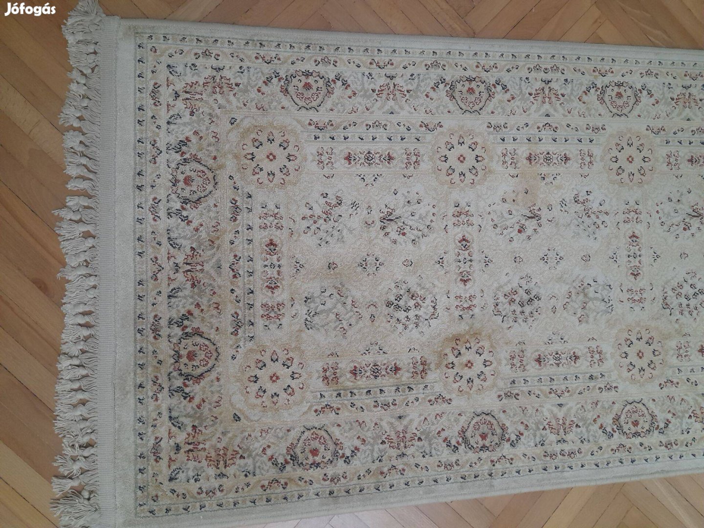 Eladó, szegett egyiptomi szőnyeg. Világos, képen látható klasszikus mintázatú. Folt mentes. Tiszta szép. Az első kép jól mutatja a színét.