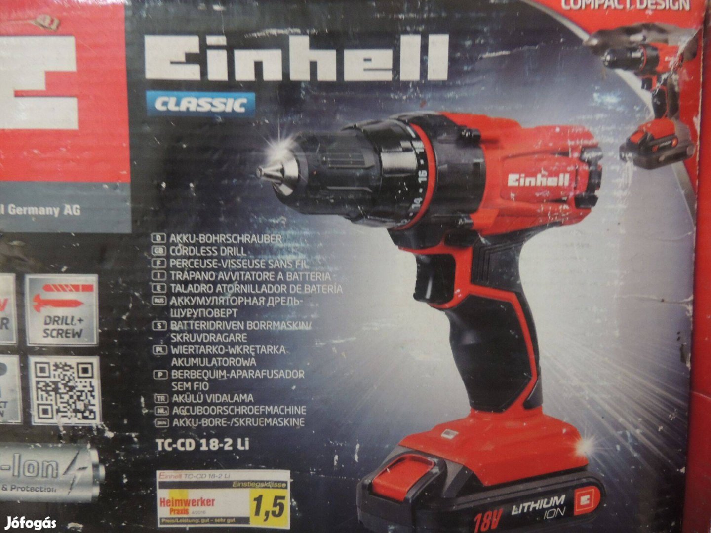 Münchenben Vásárolt Einhell TC-CD 18-2 LI Akkumulátoros Furogép Csavarbahajtó Újszerü Állapotban 44 NM Erös Motor.. Akkumulátor..Töltö..Budapest Személyes Átvétel