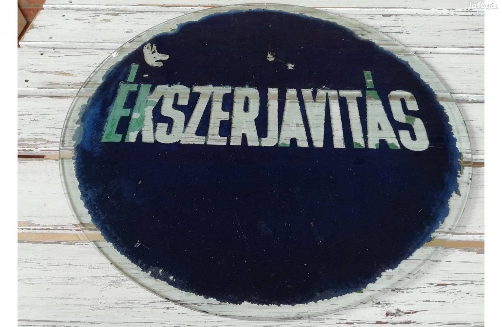 Eladó 20. század közepéről származó bolti, üzlettáblák. Festett üveg a feliratok néhol kopottasak, de kitűnő dekorációként, vagy szépen lehet restaurálni és akkor tökéletes darab. Falra rögzíthető. Mérete: 50 cm az átmérője . Ára: 20.990,- / db , helyett 14.990.-