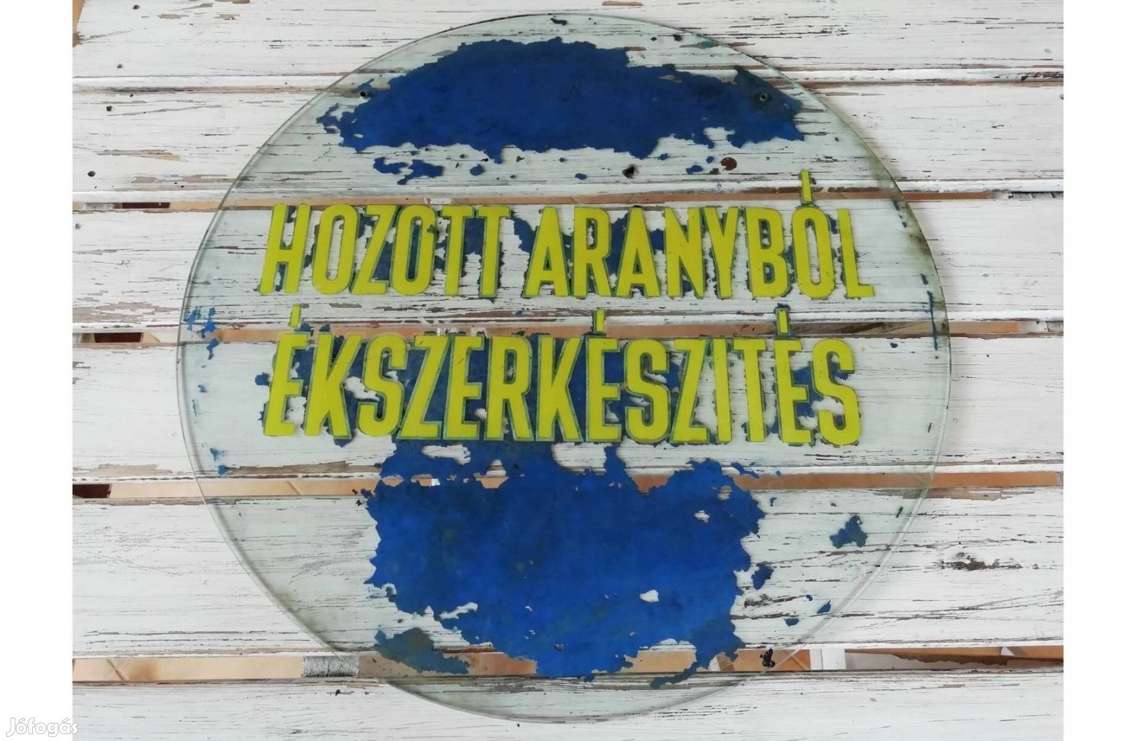 Ékszerjavítás feliratú üvegtábla a 20. század közepéről, szép patinás