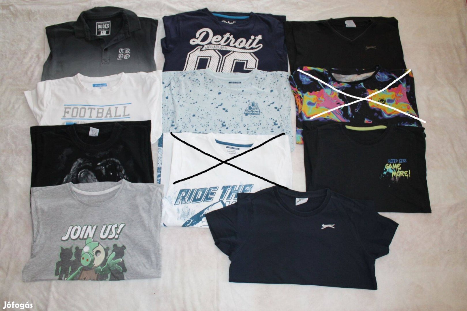 Eladóak beírás szerint 152 és 158 méretű, de valójában közel azonos hosszúságú pólók (60 cm) hibátlan, a képeken látható állapotban. A legtöbbjük újszerű állapotú. Egyedül az átmenetesben van egy kicsi folt, amit fotóztam, azt a csomagár meghatározásánál figyelembe vettem. Az áthuzott kettő már nincs meg.