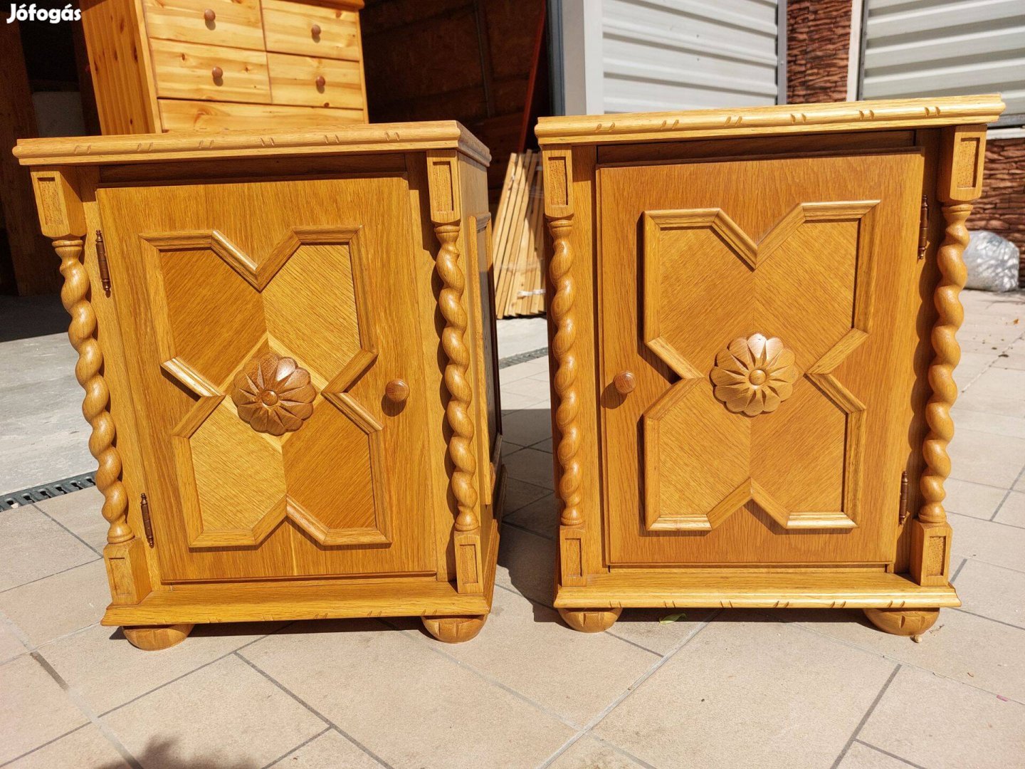 Eladó 2 db Világos Koloniál éjjeli szekrény kemény fából.