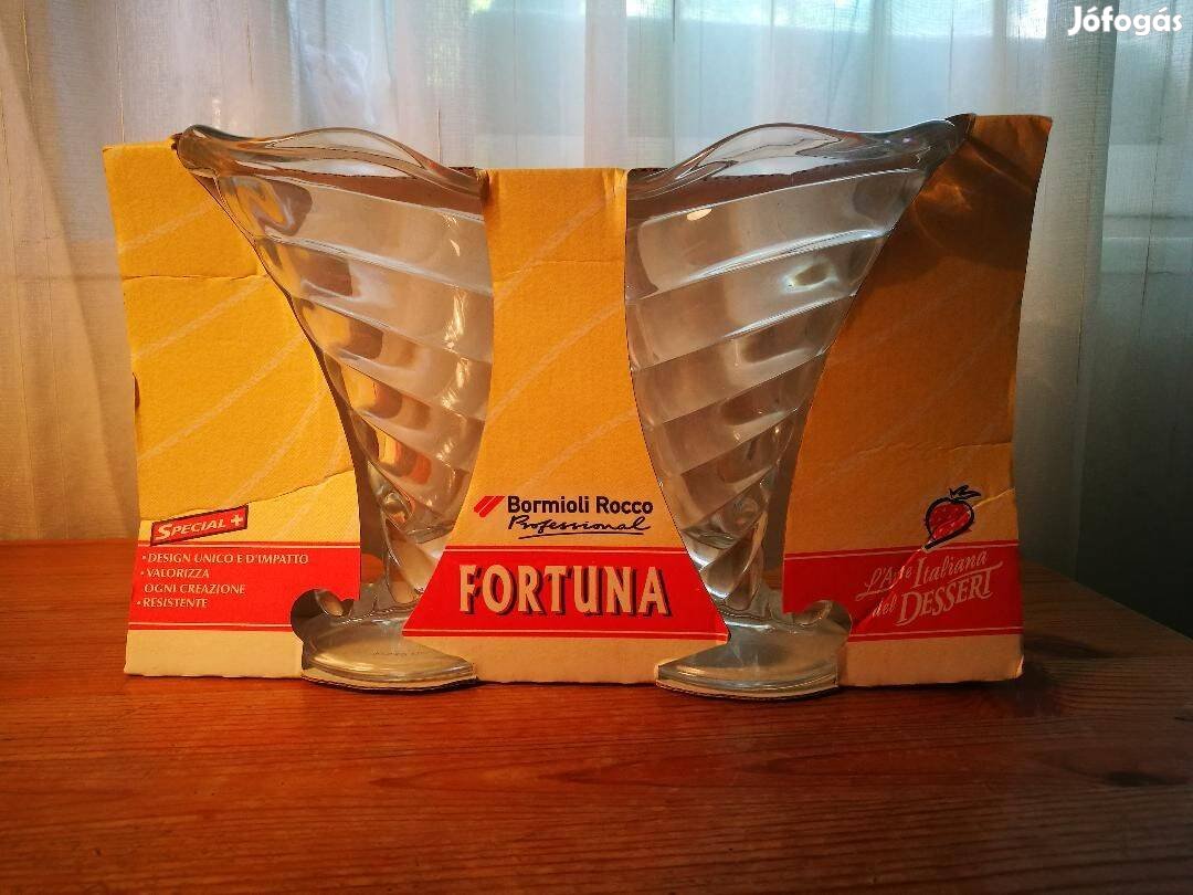 Eladó a képeken látható 2 db 18 cm magas, 12,5 cm átmérőjű, csavart formájú fagylaltoskehely dobozában.