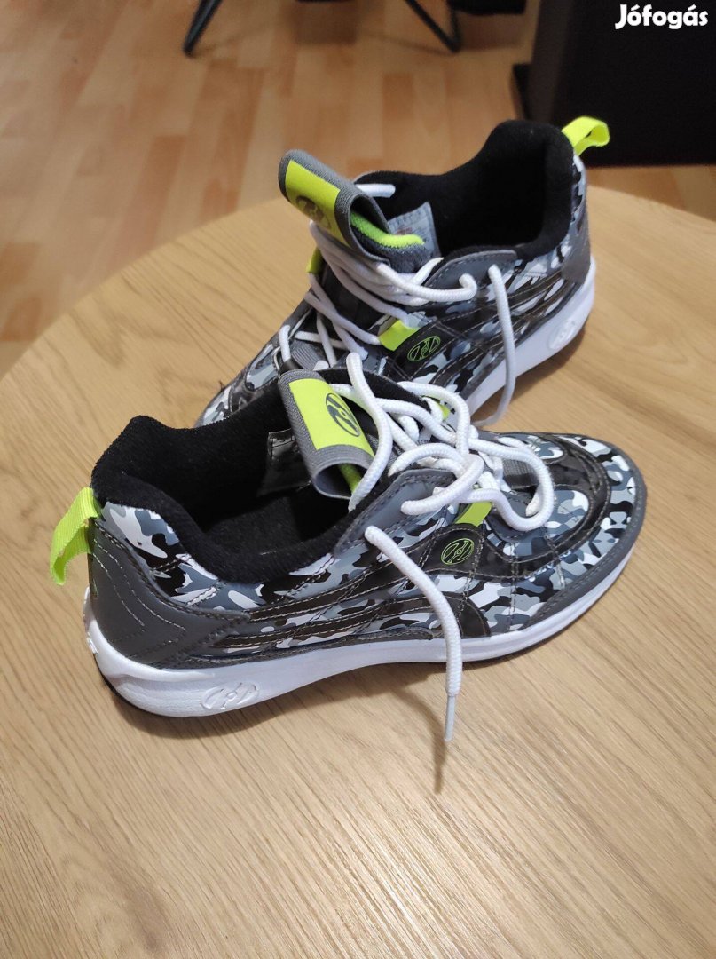 Eladó egy soha nem használt, teljesen új 35-ös méretben lévő tarka színű, unisex Heelys gurulóval rendelkező teljesen új cipő. A sarkán lévő gurulókat ki lehet venni, ha nincs rá szükség. Doboza nincsen. Ezek a Heelys új cipők most 25-35eFt között vannak.