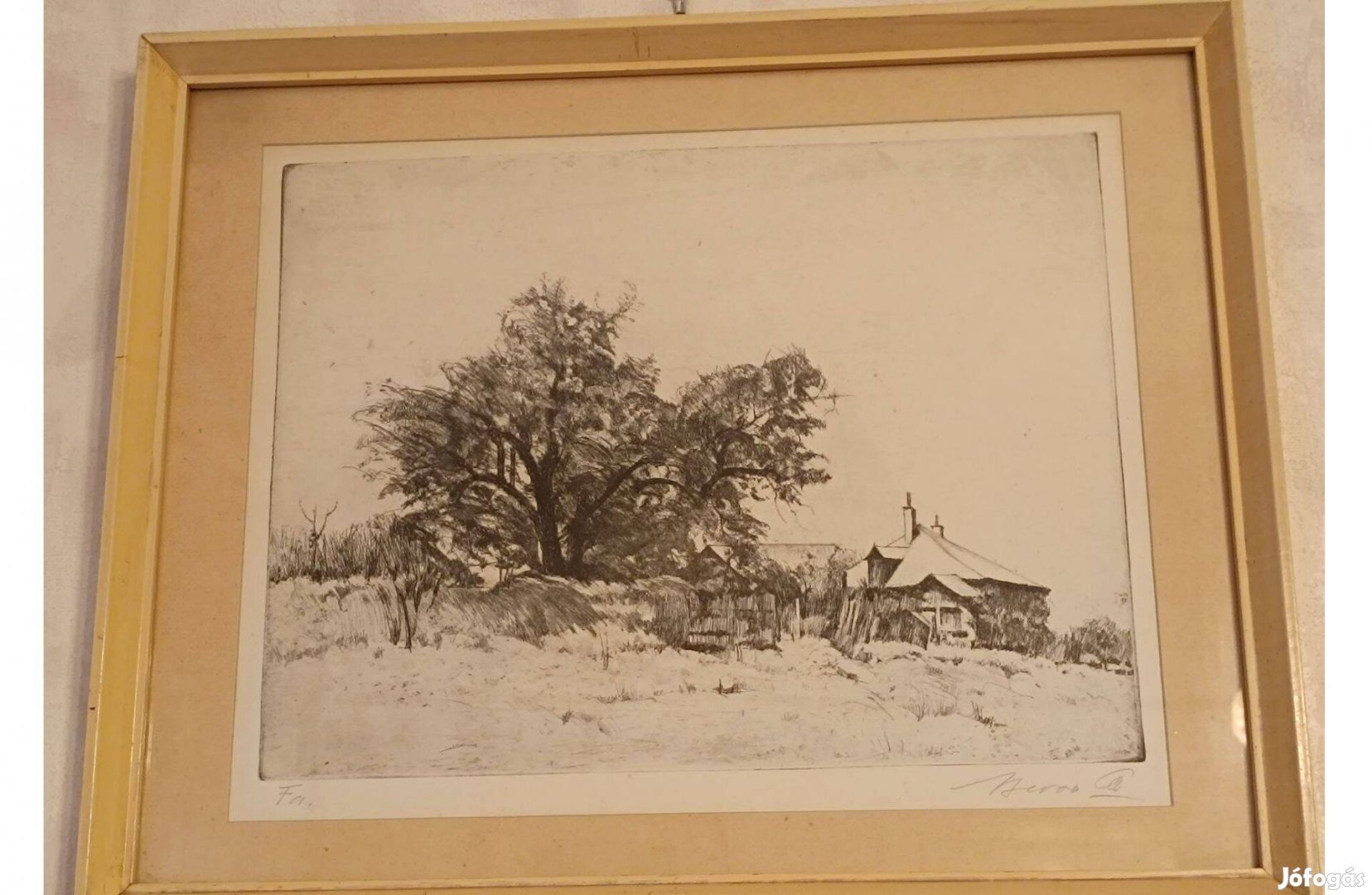 Beron Gyula (1885-1971) híres magyar festő, grafikustól hozzáillő, üvegezett keretben, azonnal falra akasztható állapotban szignózott, eredeti.