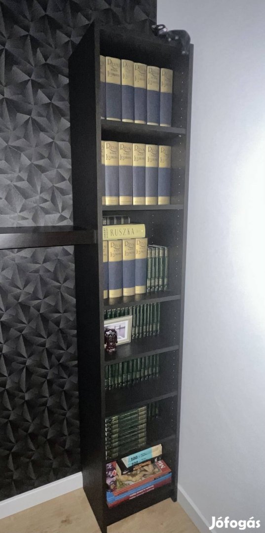 Eladó IKEA könyvespolc fekete-tölgyfa hatású, 40x28x202cm hibátlan újszerű állapotban.