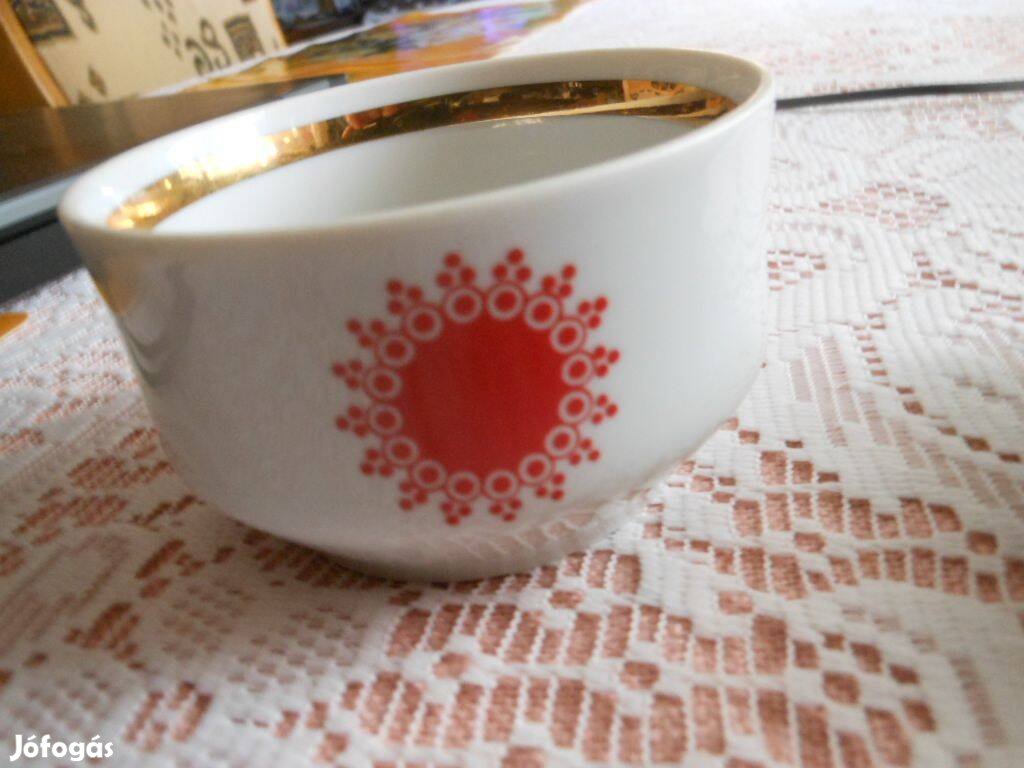 Piros körmintákkal (napocskákkal) és széles arany díszítéssel.