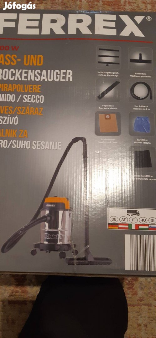 Eladó Új Ferrex száraz-nedves porszívó ! 1200 w ,20 l. 5 év jótállással! Telefonon hamarabb elérsz!