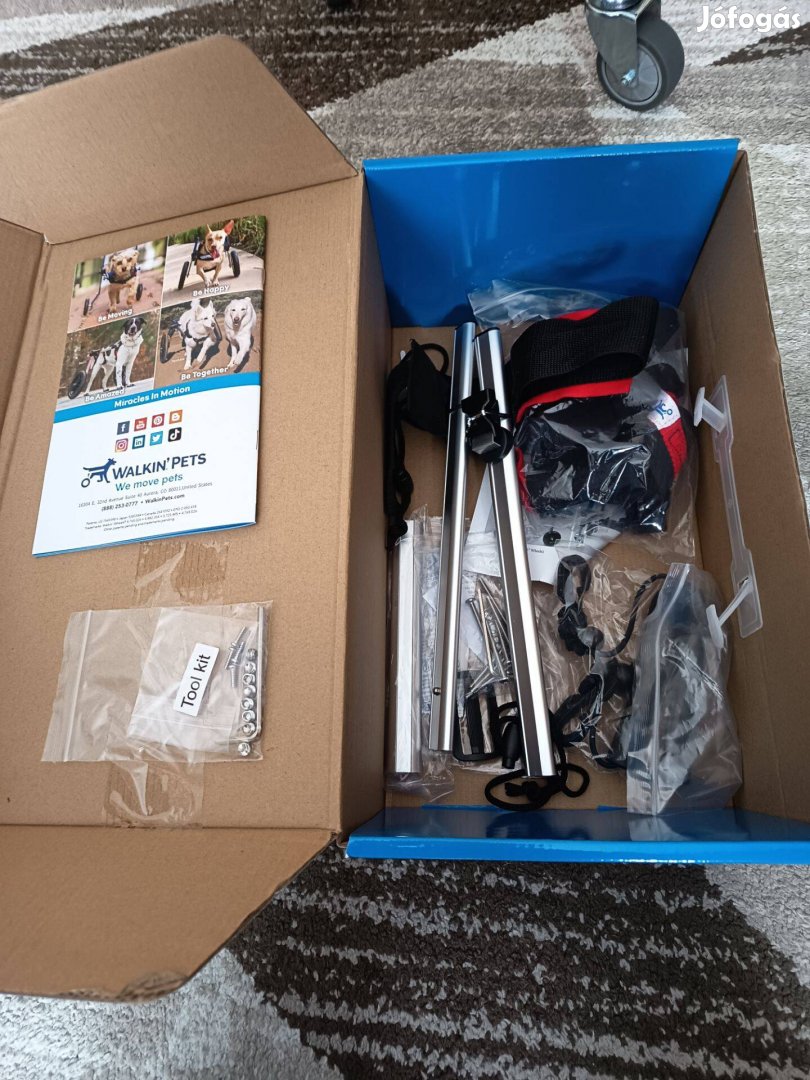 Eladó Walkin'Wheels kutyakocsi kistestű kutyáknak 5-11 kg .A segítőkocsi plusz két leszerelhető mellső kereket tartalmaz ,ami segíthet mind a négy végtagjaira lebénúlt kutyáknak.A kocsi Decemberben lett vásárolva az Ortopetben.Bolti ára 230000 Huf. 190000 forintért eladó