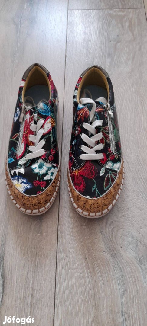 Eladó a képeken látható, új, 39-es női tavaszi- nyári, virágmintás cipő, belső talp hossza 24,5 cm.