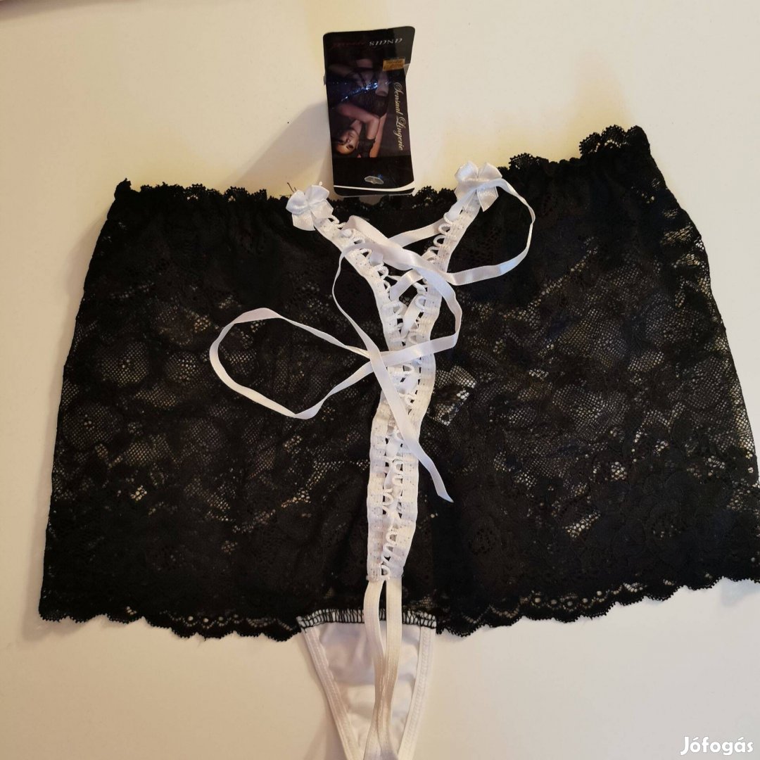 Eladó elől fűzős, fekete szinű alsónemű
