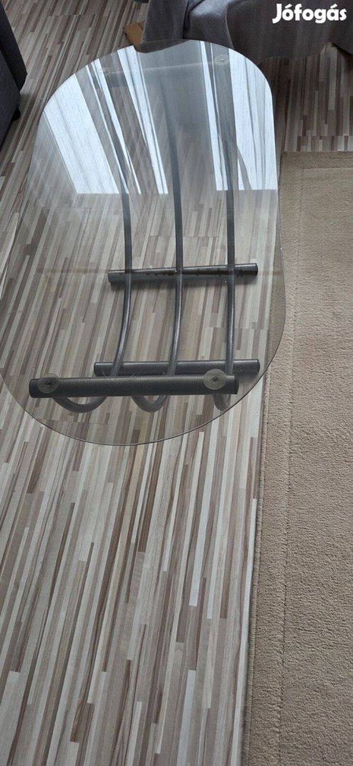 Eladó a képen látható asztal. Üveg a lapja, fém az alja.