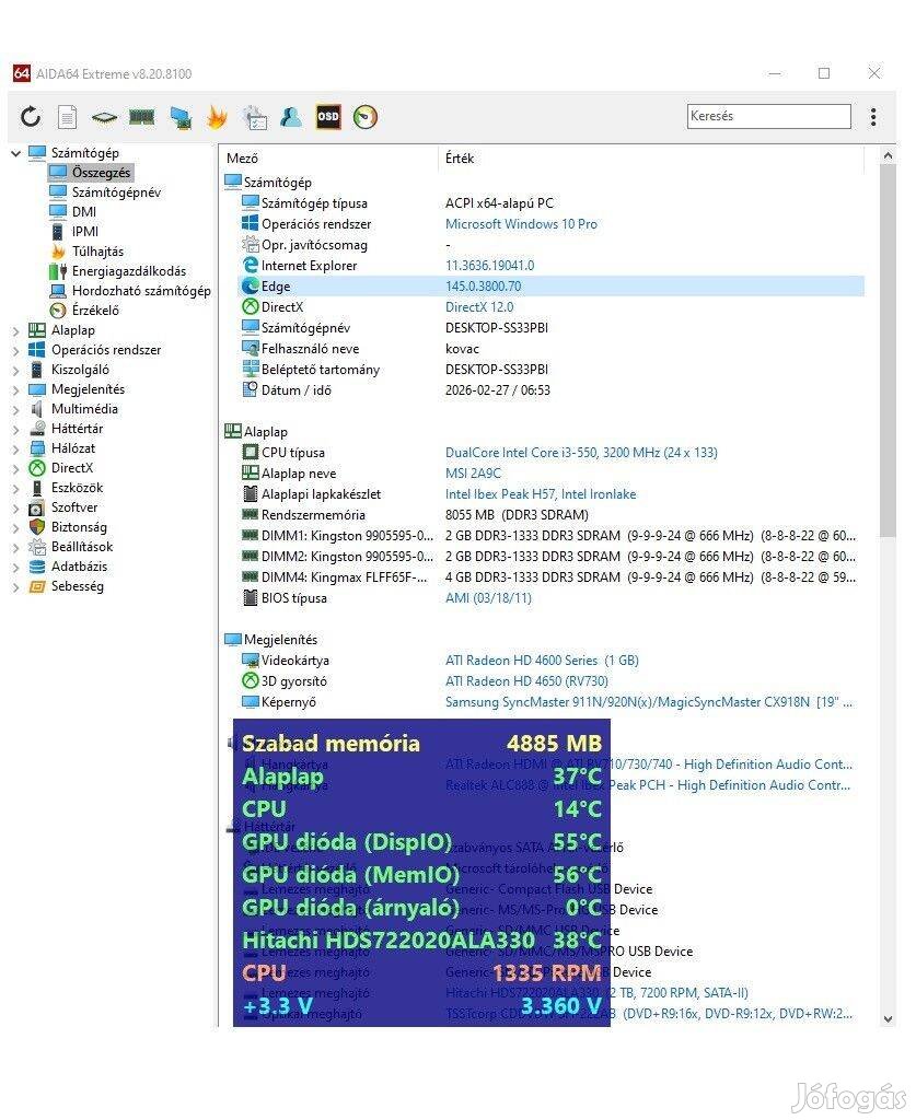 A HDD-n van kb 250 GB film kizárólag az eladás miatt tettem rá op rendszert. Filmek tárolására volt használva.