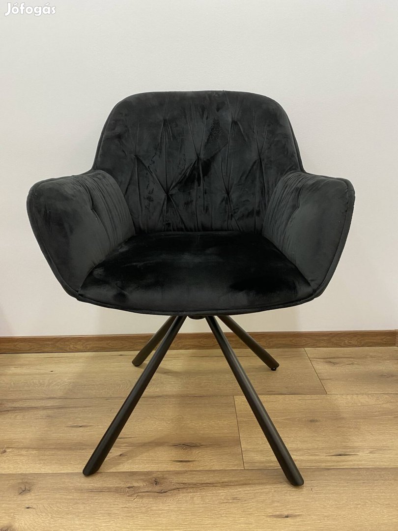 Eladó a kepen látható 1eve vásárolt fekete, forgó, karfás bársony szék fém lábakkal!
