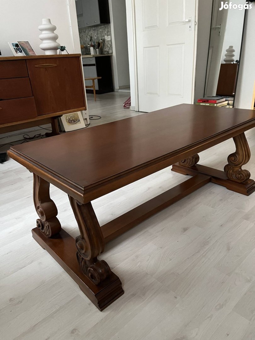 Faragott lábú tömörfa dohányzóasztal,