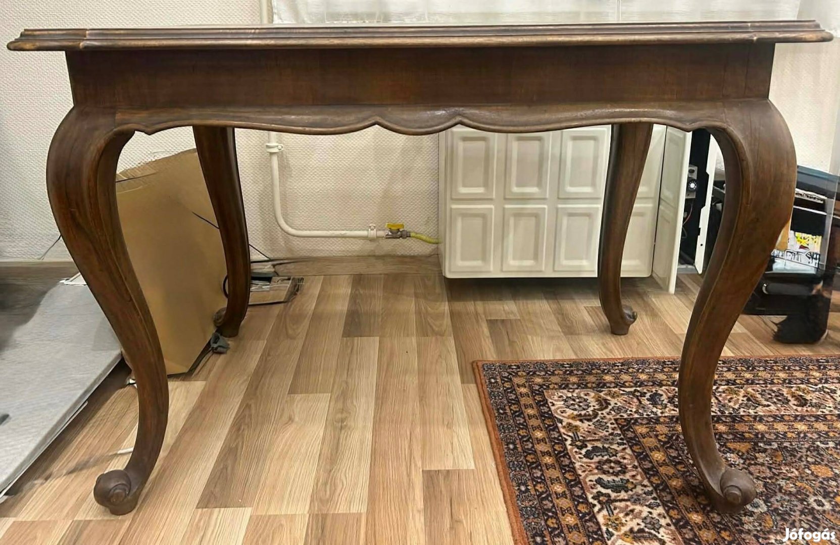 Elado egy neorokoko cabriole labu iroasztal. A felso lap politurozasra szorul, de egyebkent stabil.