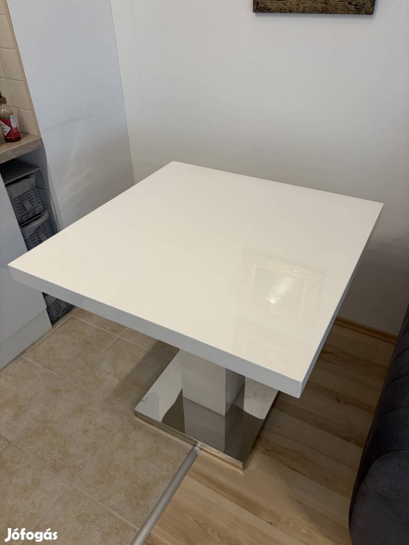 Eladóvá vált étkezőasztal. 60x60cm magasfényű fehér. Apró sérüléssel, képek között megtalálható.