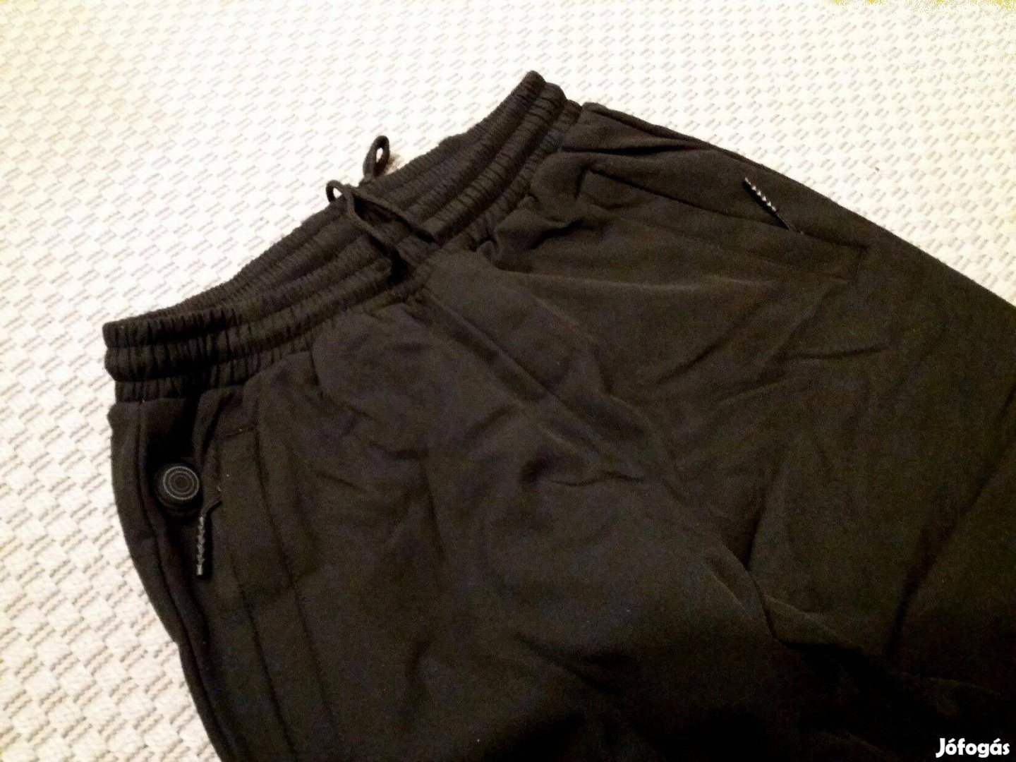 Fekete, vízlepergető anyagú, jogging fazonú, derékban gumírozott,