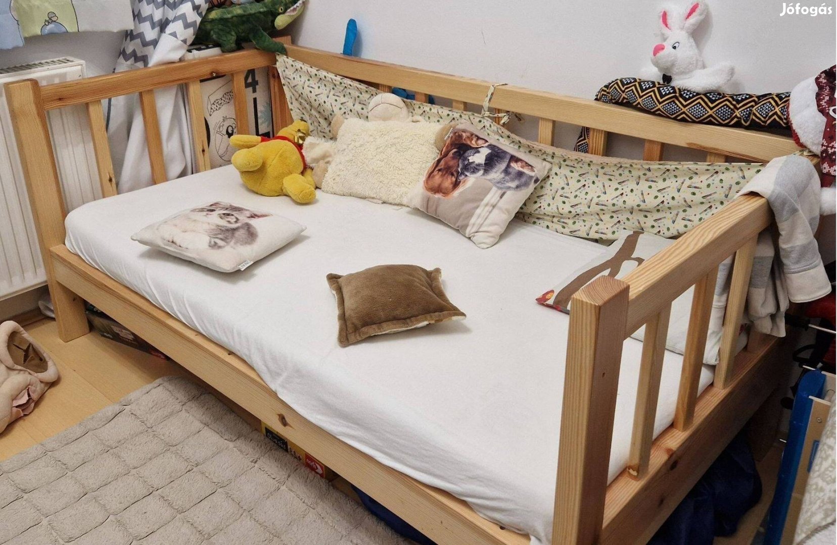 Jó állapotú, masszív, egyénileg, kiváló mesterember által készített gyerekágy eladó, használt, de jó állapotú matraccal.