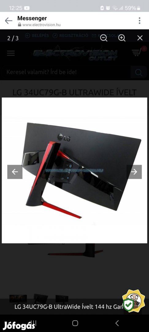 Eladó használt Lg ivelt monitor 86 cm.i