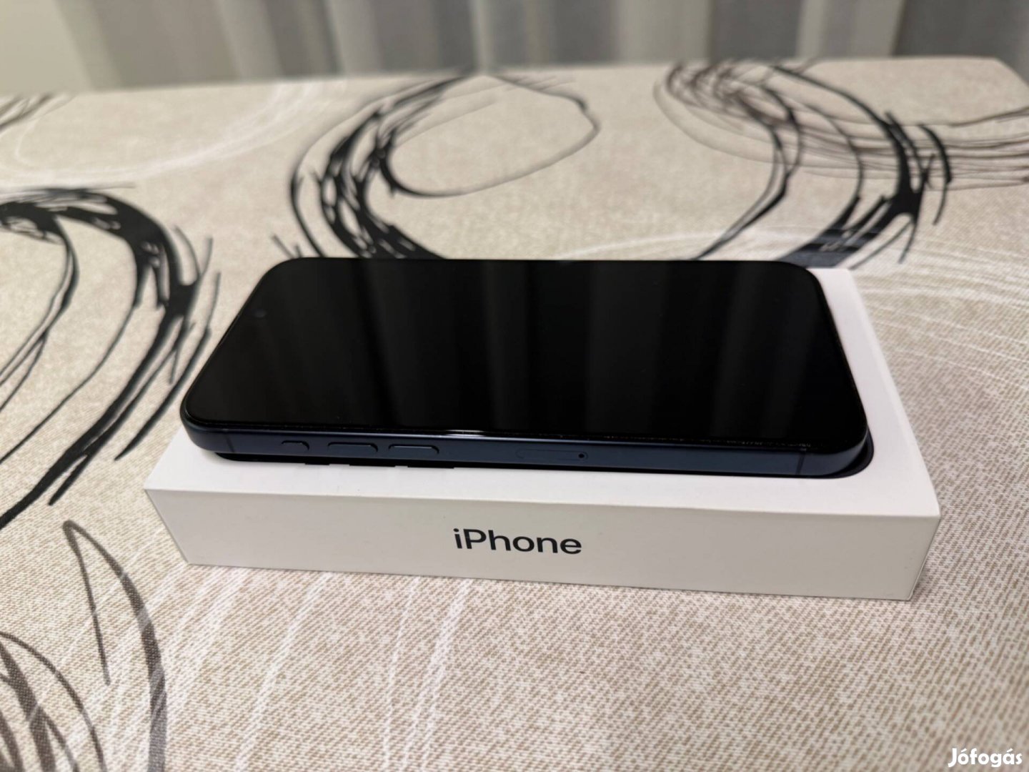 Eladó egy kék színű iphone 15 Pro Max, 256 GB-os kivitelben, 85%-os akkumulátorral.