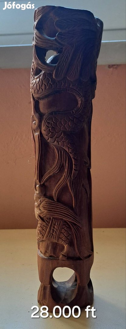 Eladó kézzel készített fafaragvány sárkányos motívumokkal.
