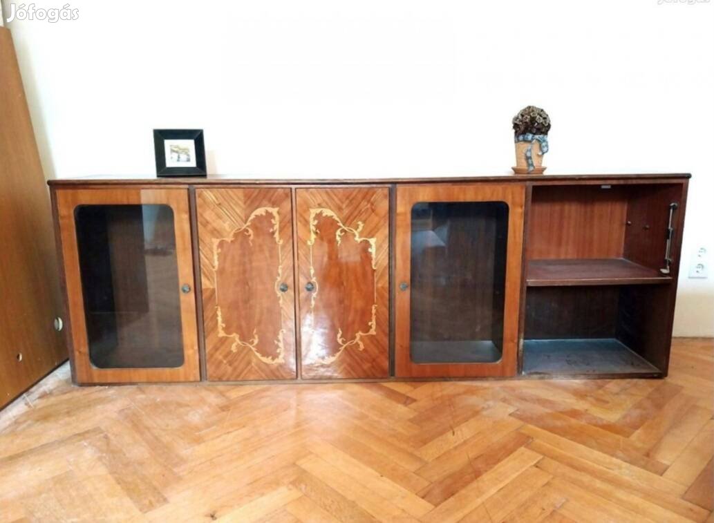 Eladó a képeken látható vitrines szekrény, komód, tv szekrény ki mire használná. Modern környezetben is szépen mutat. Méretei: szélesség: 220 cm, magasság: 76 cm, mélység: 38 cm. Megvan hozzá a teteje is, igény esetén azt ajándékba adom. Budapesten a 20. kerületből elvihető, magasföldszinten van. Ára:19 900 Ft