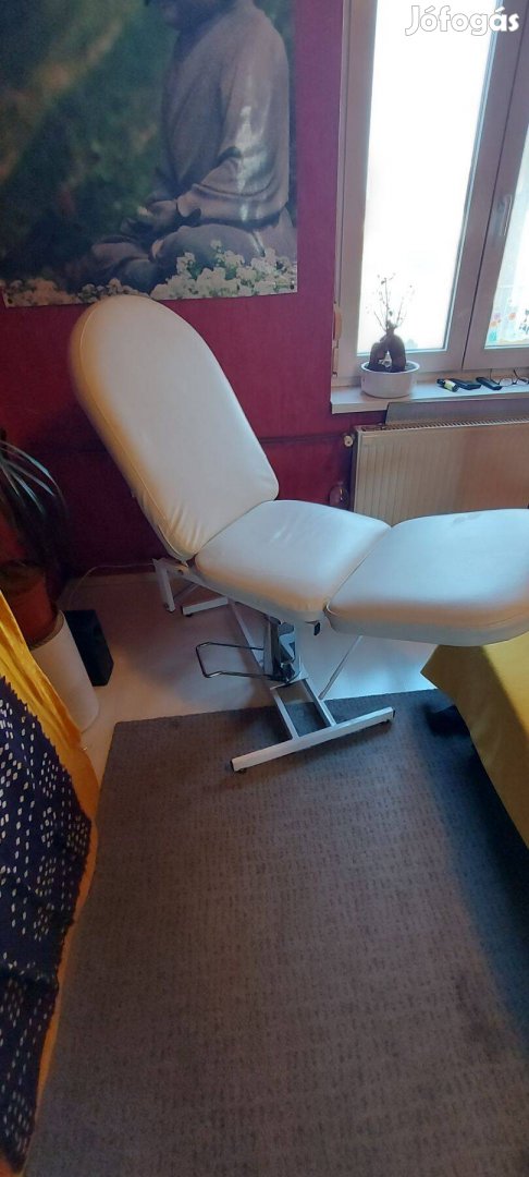 Eladó a képeken látható kozmetikai szék vagy ágy vagy kezelő szék vagy masszázs ágy bármelyikre lehet használni. Lábpedállal lehet állítani a magasságot elől hátul pedig rúddal a dőlest masszív biztonságos szerkezet hívj fel ha segítsetek üdv Gyula