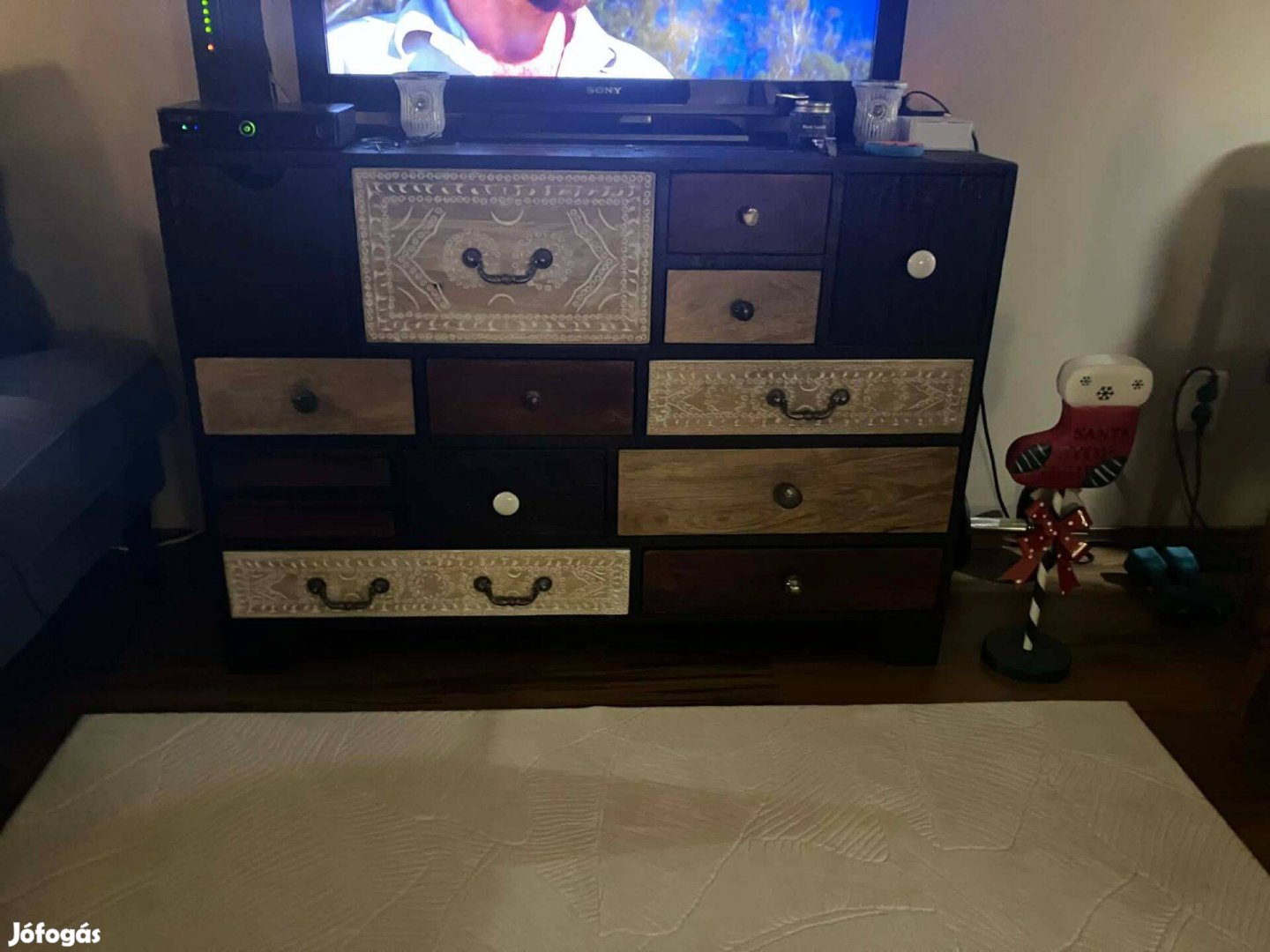 Eladó a képen látható tömör mangófa 14 fiókos komód.