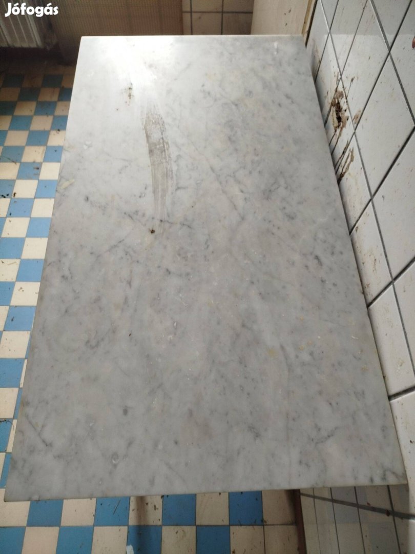 Eladó márványlap tetejű asztal. A lap nincs rögzítve a képen láthazó vasasztalhoz. Csak rávan téve. Spró karcok egy- két pici apó lepattanás van a szélén. De ez elenyésző. Szép állapotú a márvány. Mérete 100x55x2,8 cm. Az ár a márványlapra értendő. Az asztal ingyen van hozzá.