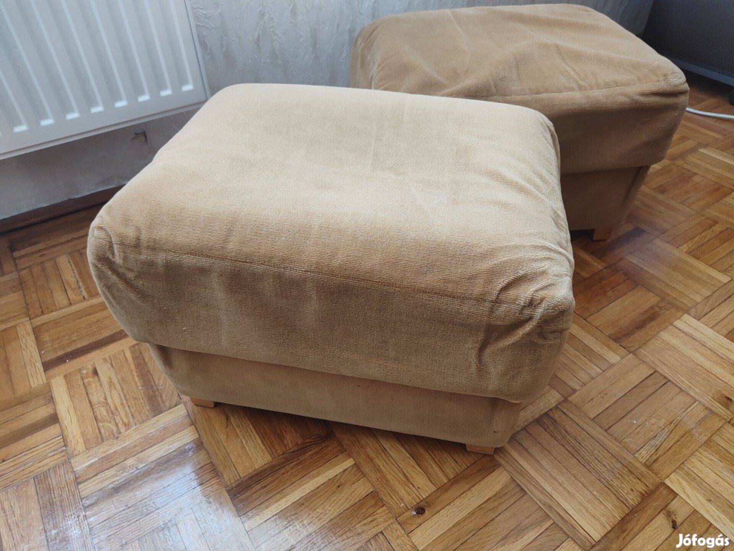Eladó két puff, azaz lábtartó használt állapotban. A felső részükön egyedileg készített védőhuzat van, ami az eredeti kárpitot megvédte az idők során. A puffok ára 6000 Ft / db