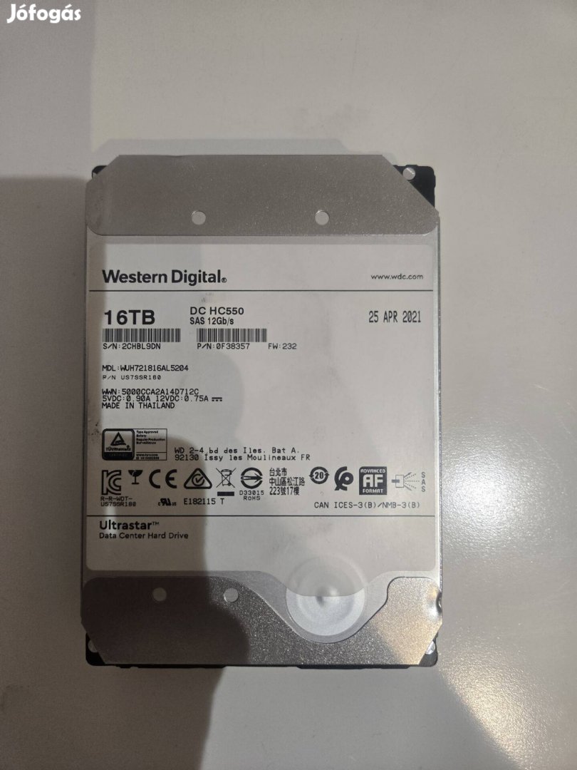 **1. Western Digital Ultrastar 16TB merevlemez (HDD)**