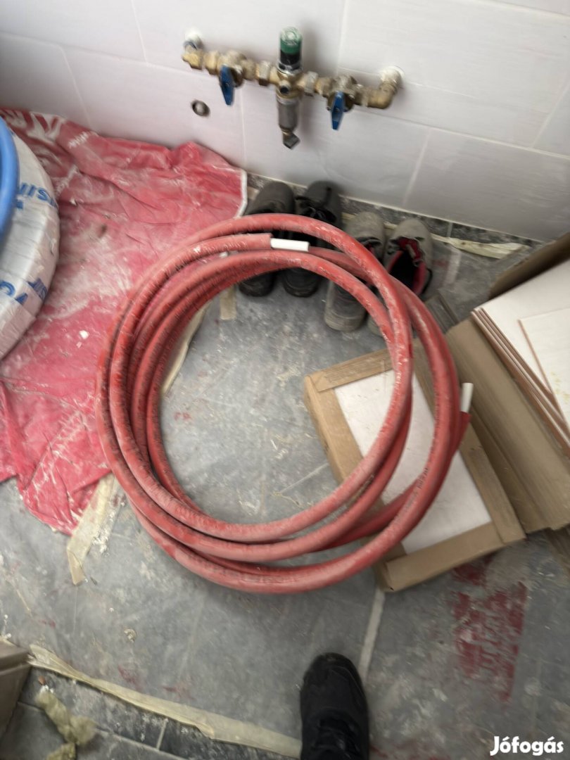 Eladó építkezésből megmaradt víz csővek illetve padlófűtéshez cső. A piros és fehér szigetelésű folyó métere 750.- huf, míg a 200 m tekercs cső 70.000.- huf