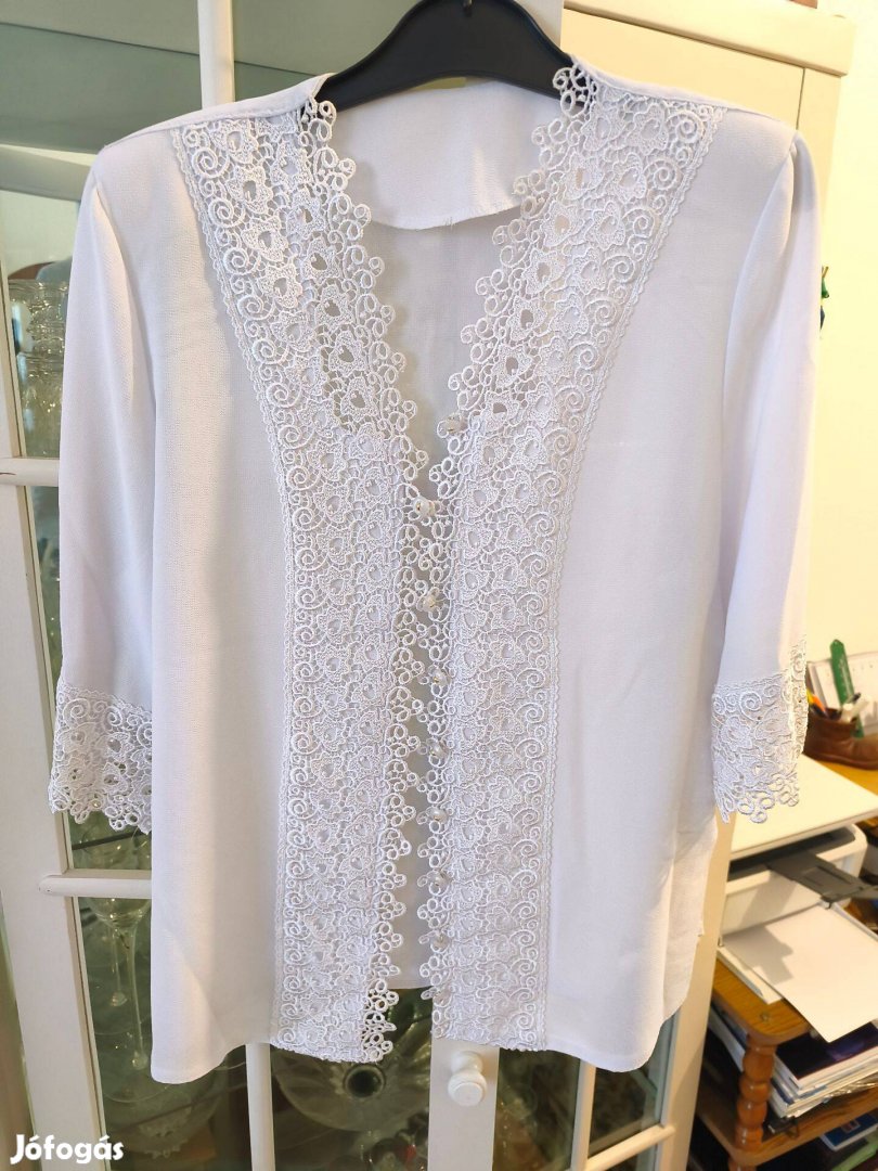Alkalmi, gyönyörű, fehér női blúz, különleges csipke betéttel, újja csipke diszítéssel. Alig használt, kitűnő állapotú.