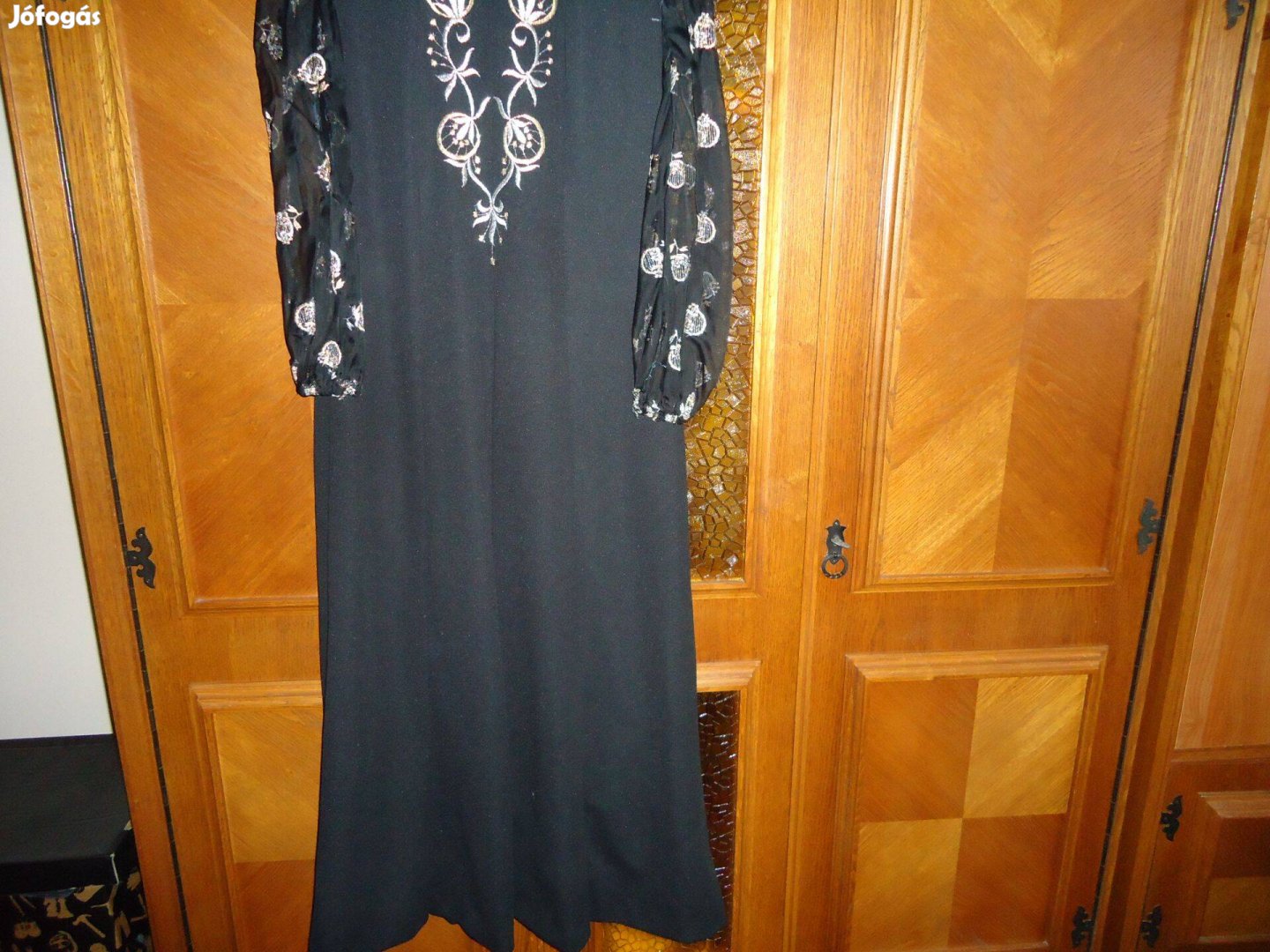 elegáns, hosszú, arany hímzéses, alkalmi ruha