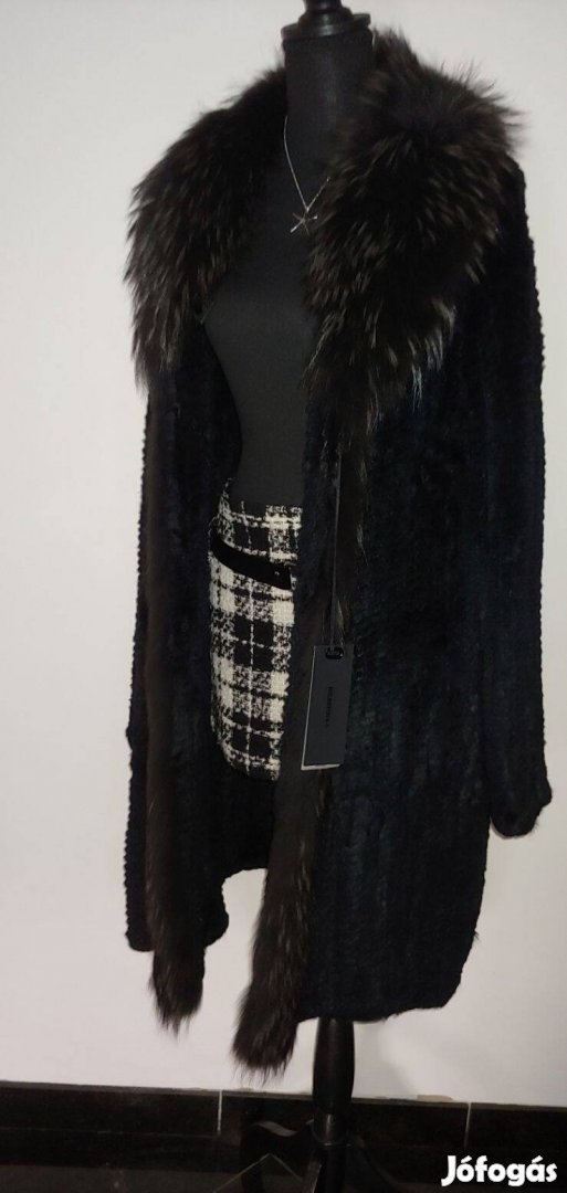 Nyúl bunda elegáns róka szőrme gallérral