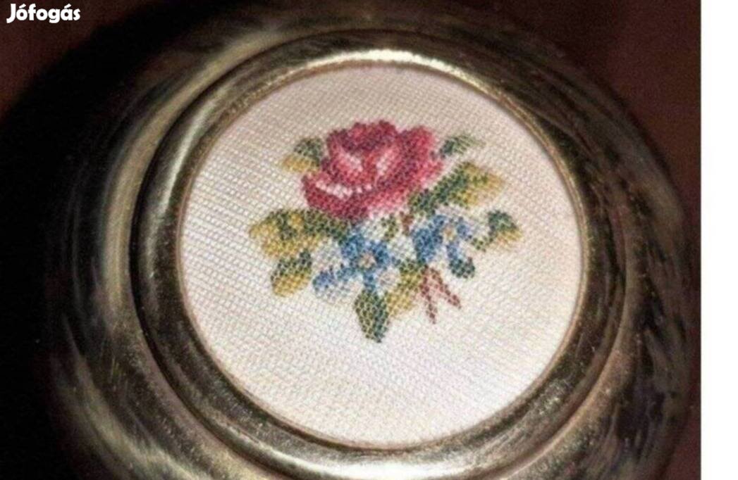 Nagyon elegáns gobelin díszítésű réz doboz, ékszertartó.