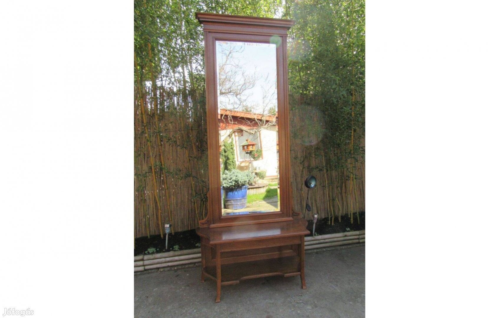 Elegáns és szép formájú eredeti jugendstil csiszolt nagy tükör konzollal, rögtön lakásba rakható szép állapotban, lásd fotók.tükör: 185×96 konzol: 50×105×38