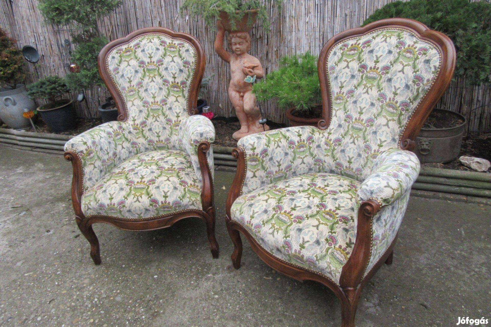 Neobarokk fotel-szék párban felújítva,lásd fotók. Fotel mérete: 100 cm magas, 70 cm széles, 65 cm mély,ülőmagasság 47 cm.