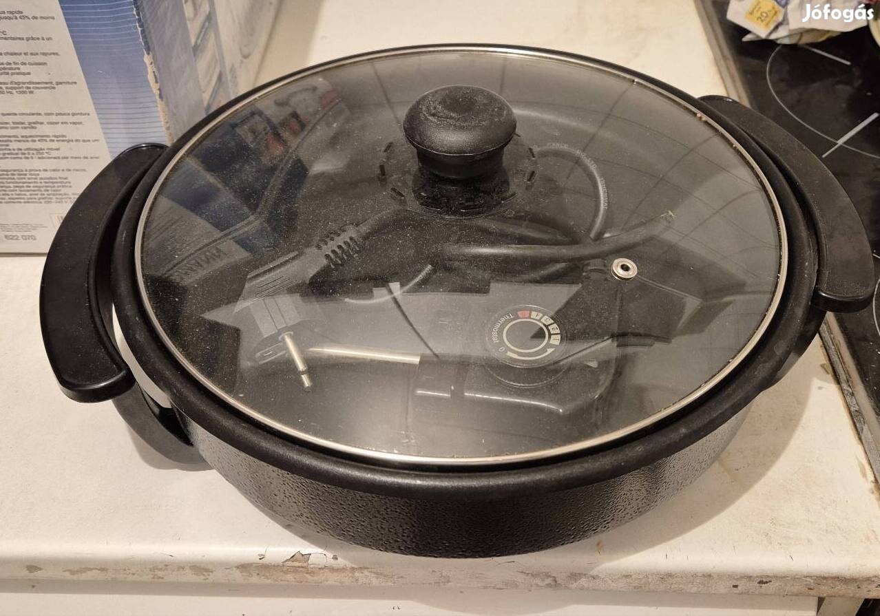 Tapadásmentes bevonattal ellátott kényelmes ételkészítést segítő készülék. Tűzhely és sütő nélkül is elkészíthető a finom étel, akár a szabadban is. Kb. 36 cm átmérője van. Üveg fedő jár hozzá. Saját tartozék. Személyesen átvehető Bp.Xll. kerületében.