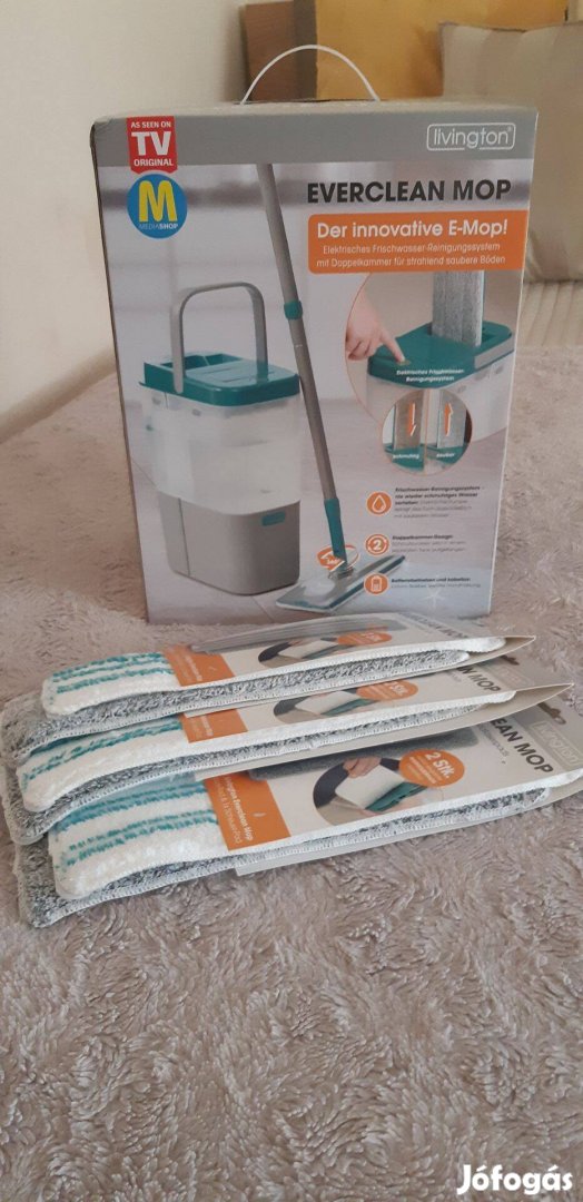 Everclean, elektromos tisztavizes felmosó, új, bontatlan állapotban, 3 db moppal együtt eladó 8000 ft.-ért. Az eredeti ára a képek között található.