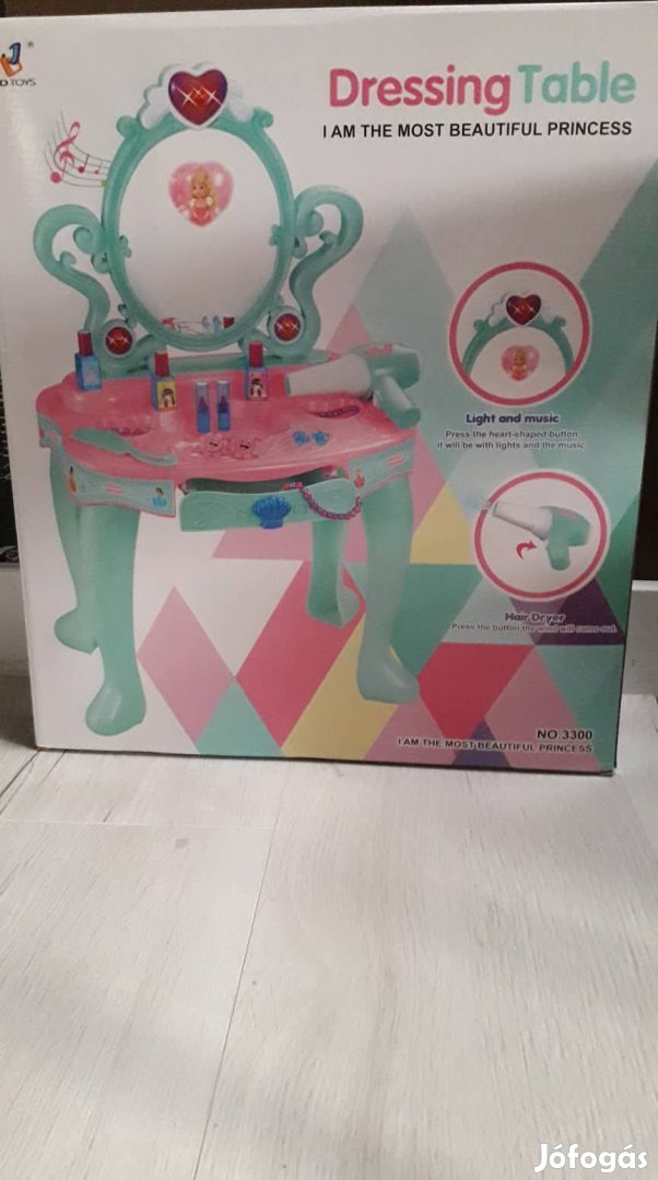 Új elemes fésűlködőasztal elemes hajszárítóval és kiegészítőkkel