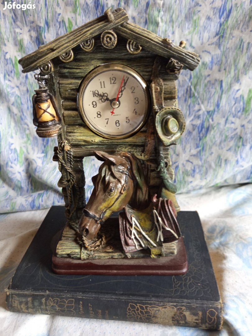 Eladó a képeken látható,müködö képes lovas óra.Érdeklödni itt is lehetméretei24y14cm..