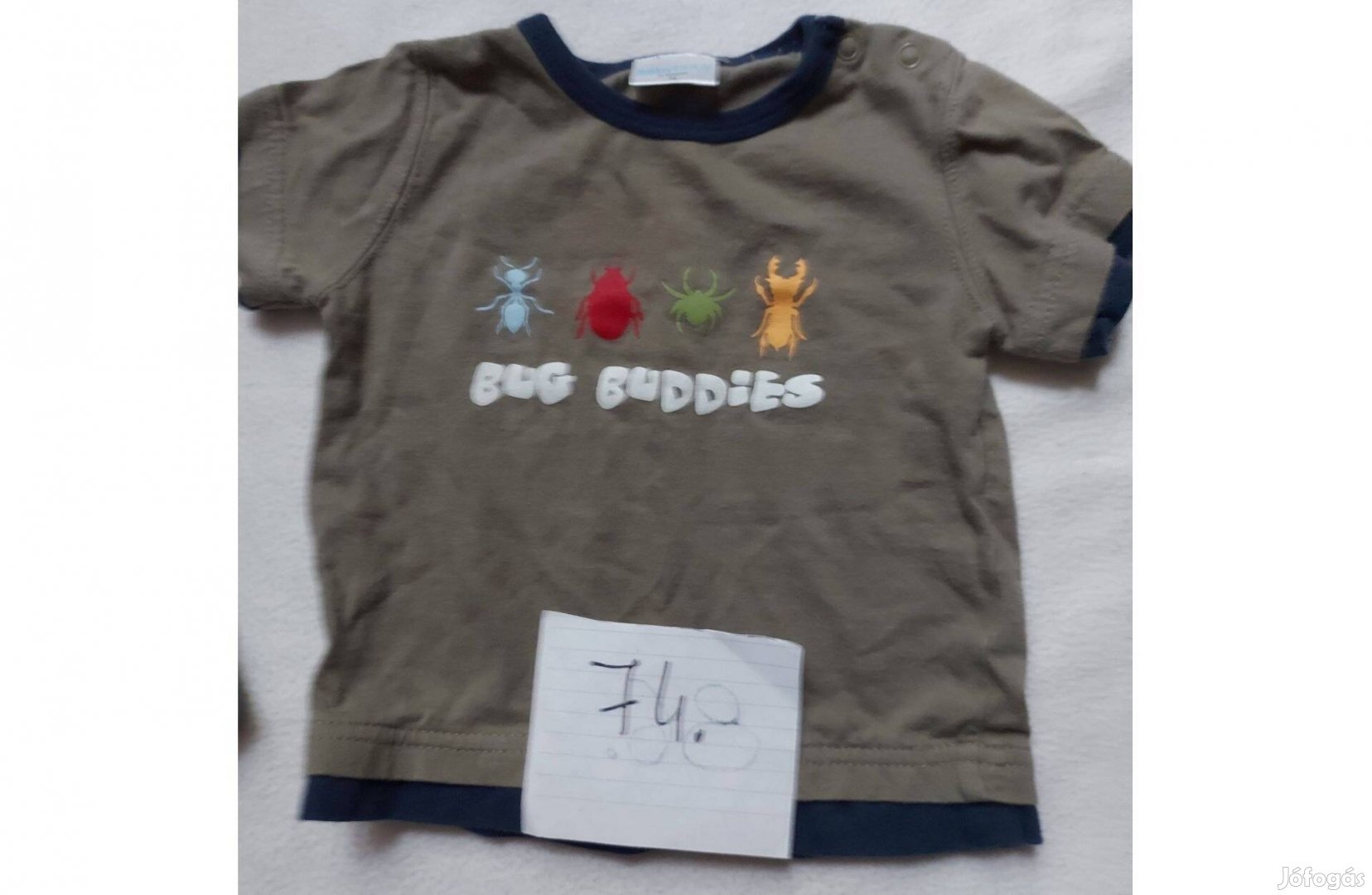 74-es kisfiú póló, elől mintás, oldalt patentos