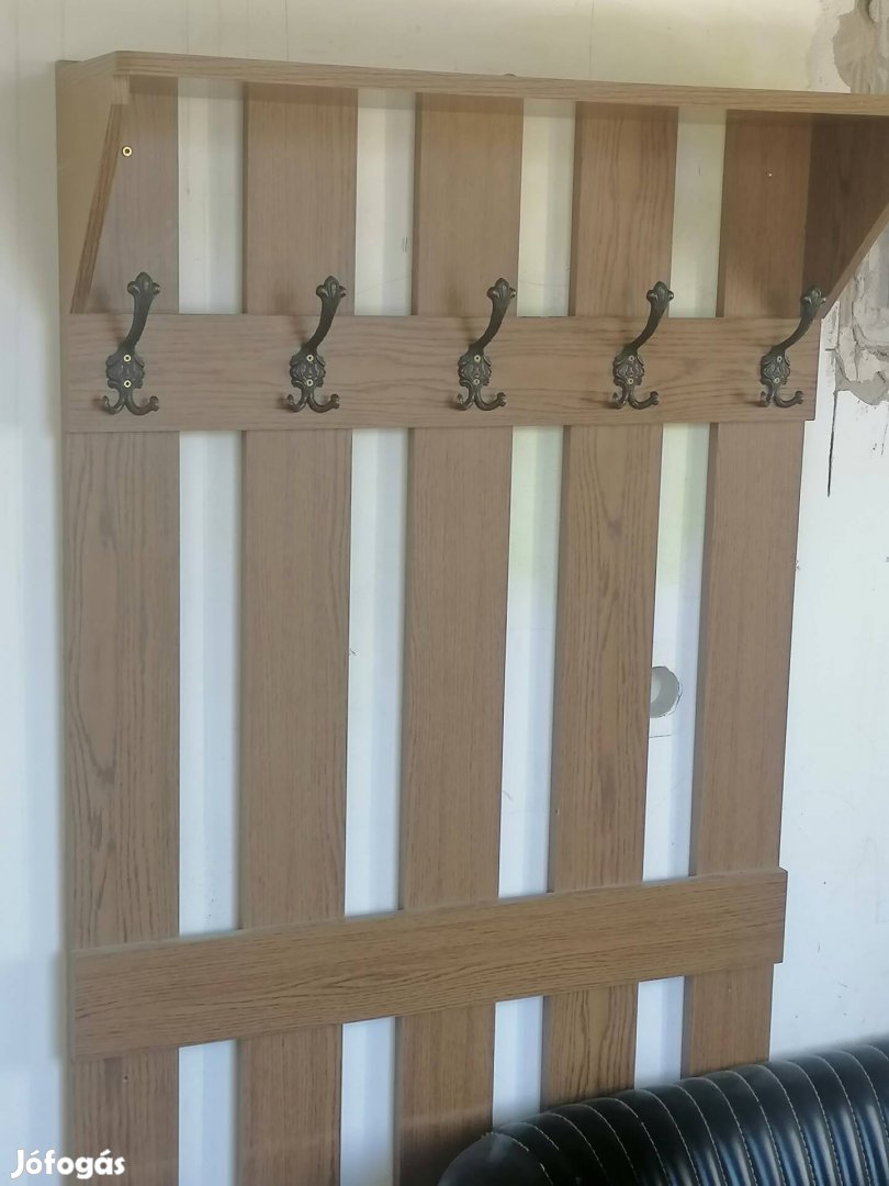 Előszoba kabátakasztó kalaptartóval, 90x130 méretben, sötét barna faerezetes.