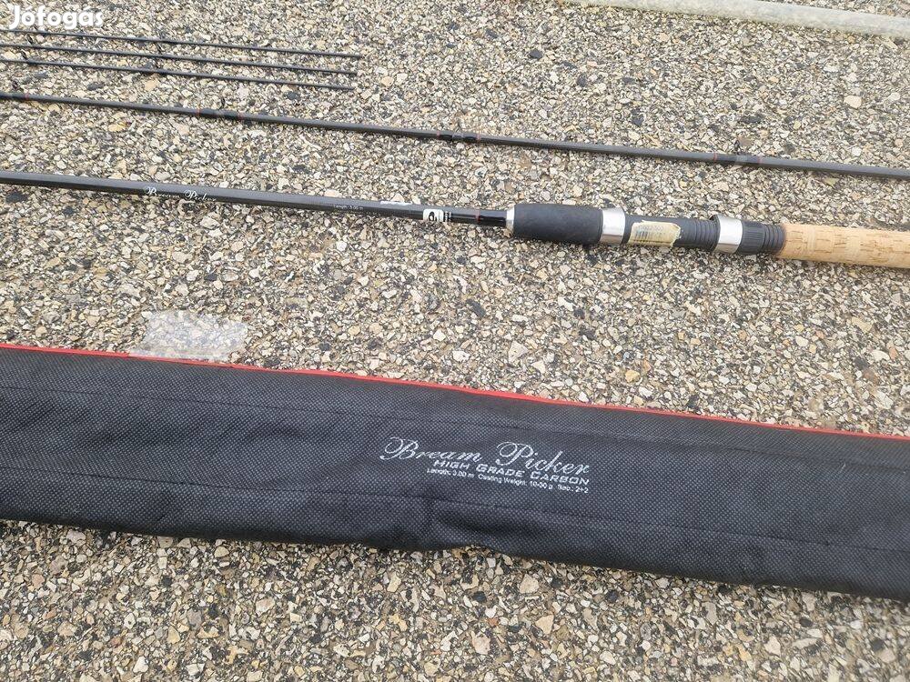 Eladóvá vált 1 darab Energo Team Bream Picker horgászbot. 300 cm és 10-30 gramm, kiváló finom, keszeges pálca. Javításmentes, csak 1-1 kis használati karc van a felületén. Gyári zsákja és 3 spicce is van, a legerősebb egy gyűrűnyivel rövidebb. Az ára 11.000 Ft, alku nincs.