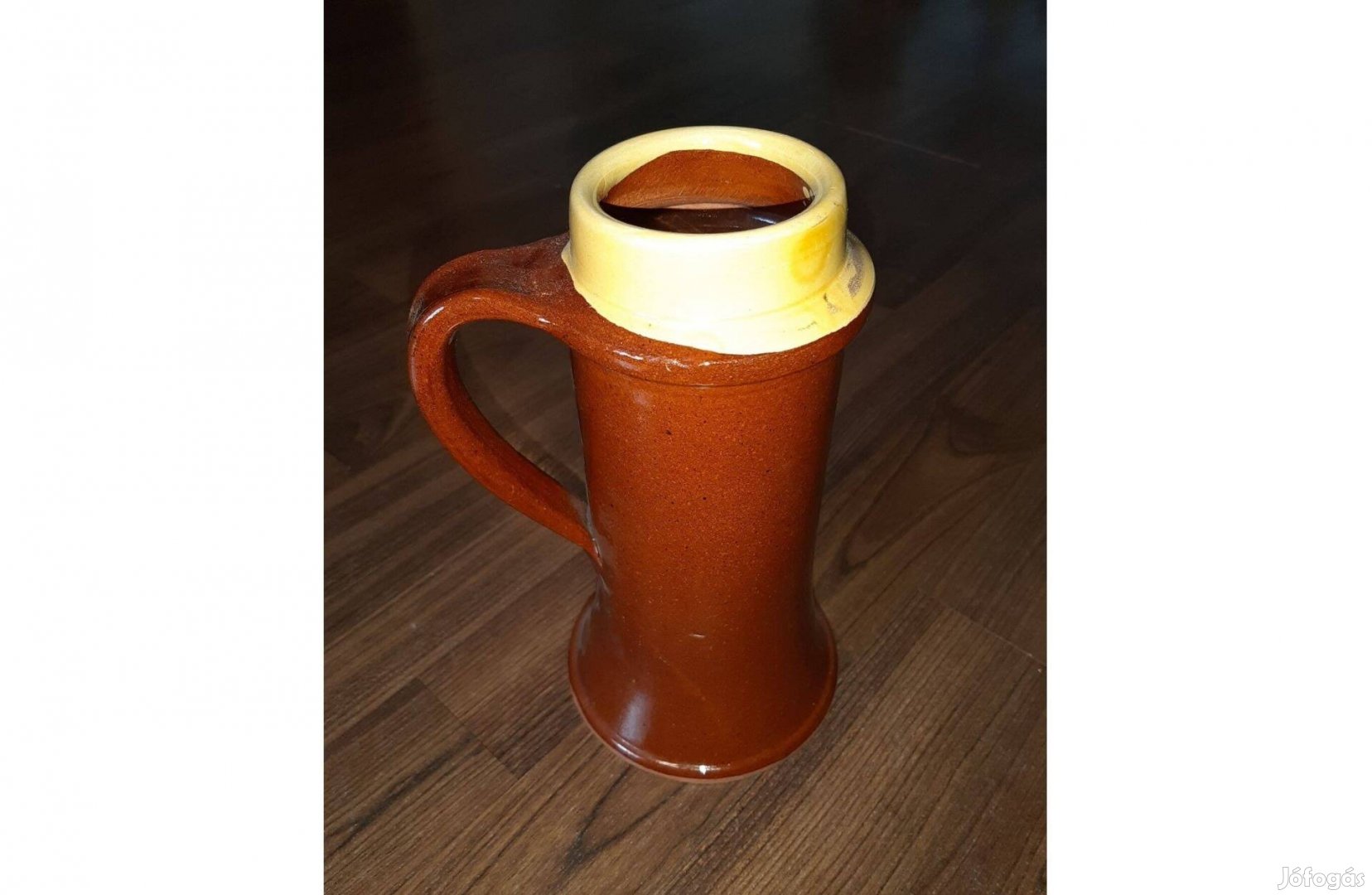 Érdekes kialakítású és formájú kancsó, esetleg váza funkcióval bíró kerámia.