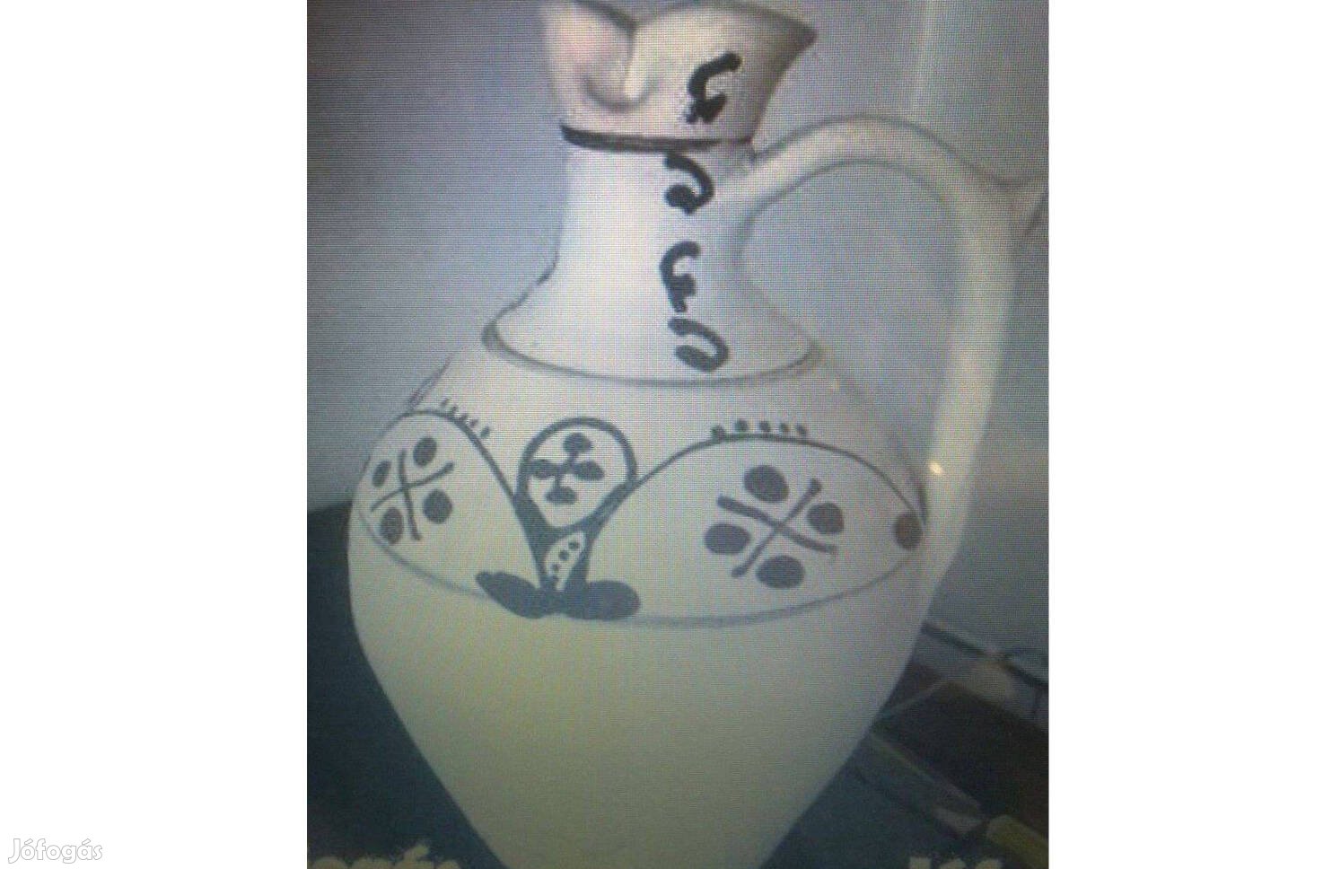 Új, hibátlan, mázatlan jellegzetes körösvidéki motívumokkal festett kerámia köcsög eladó,